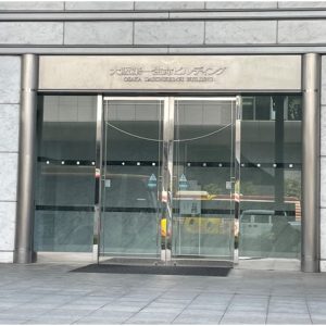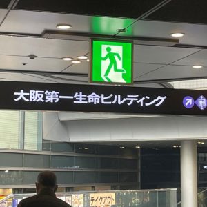 - 頭上に大阪第一生命ビルディングの標識が出てくるのでそのまま進んでいただいて左側になります。